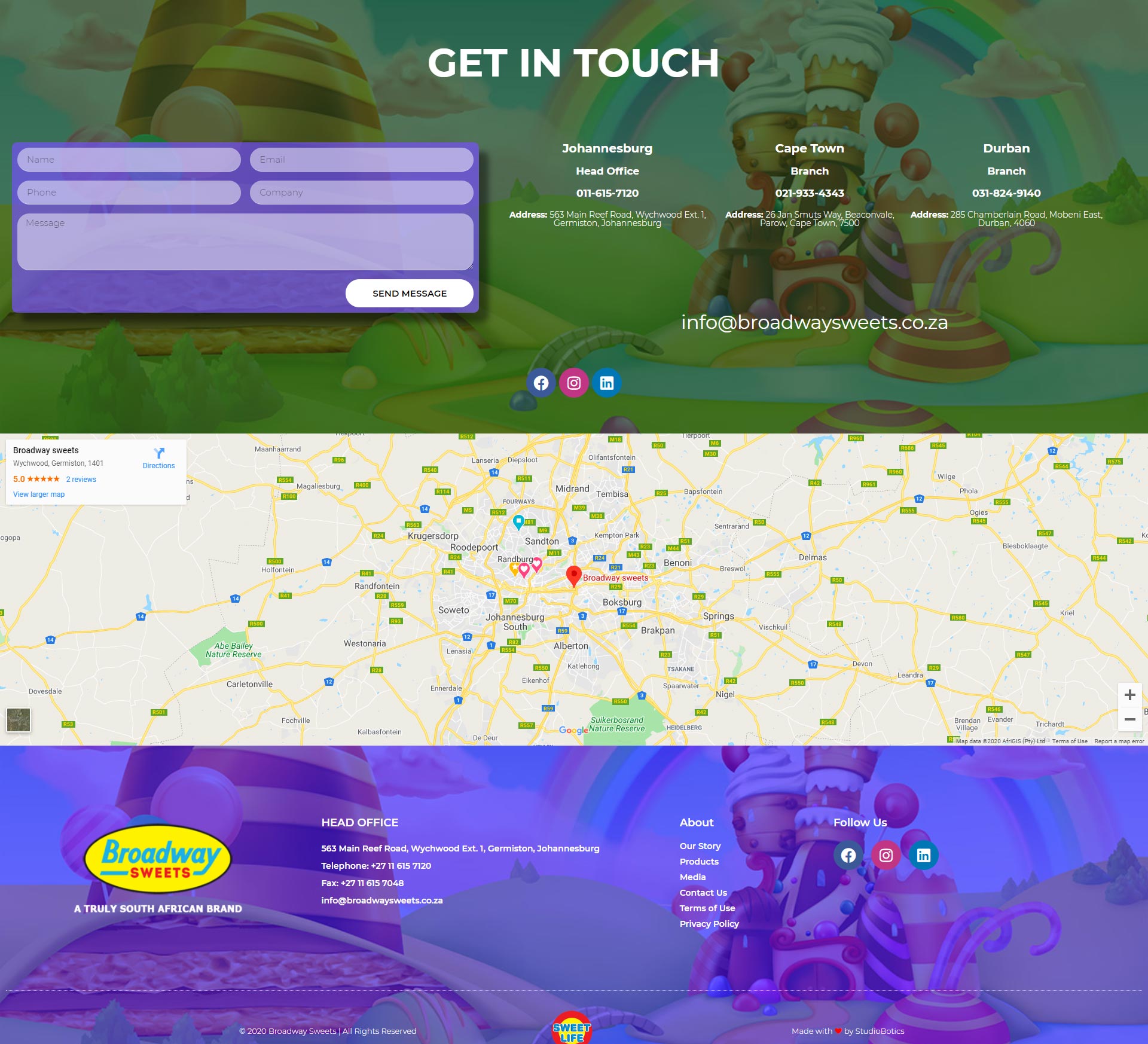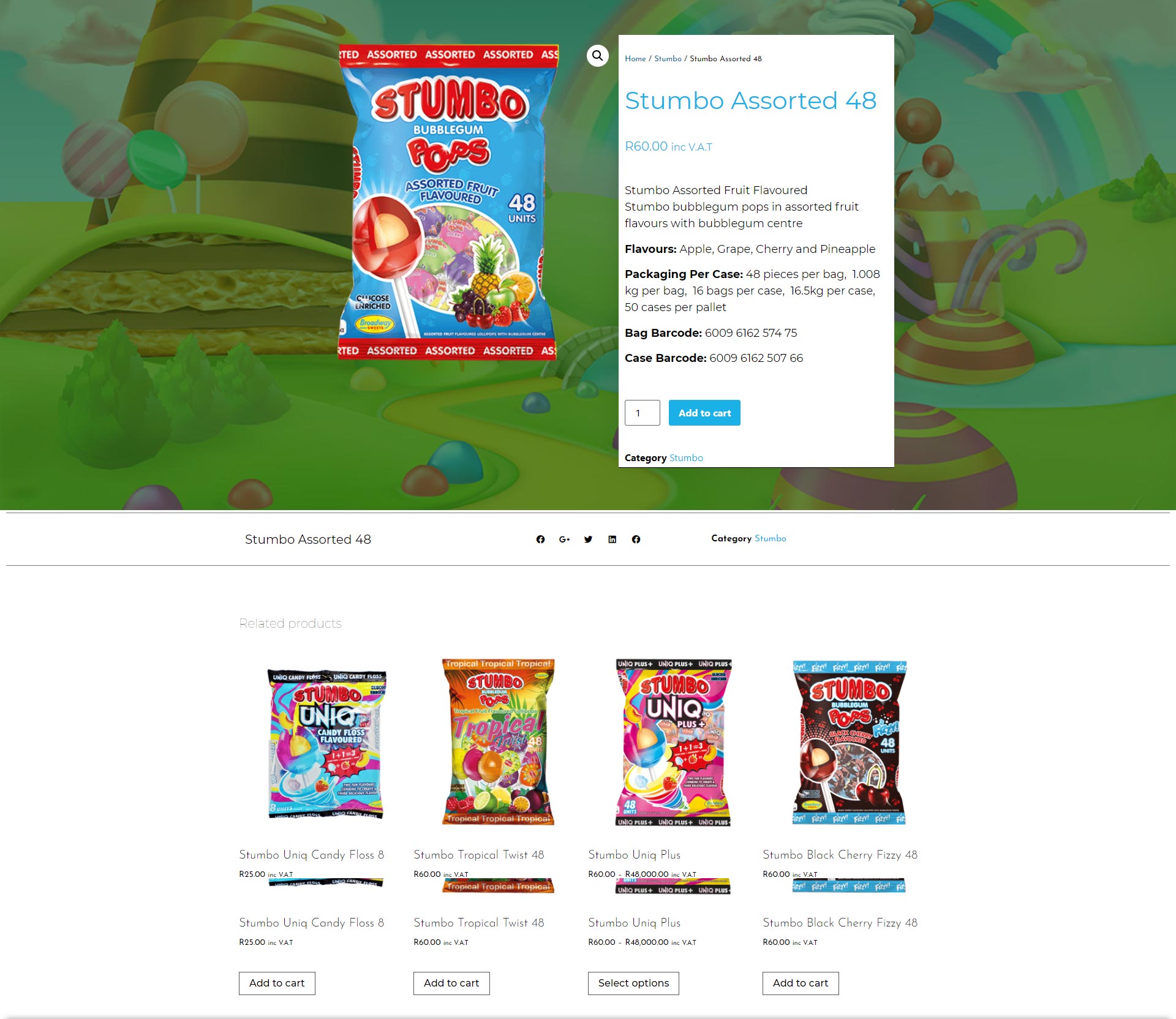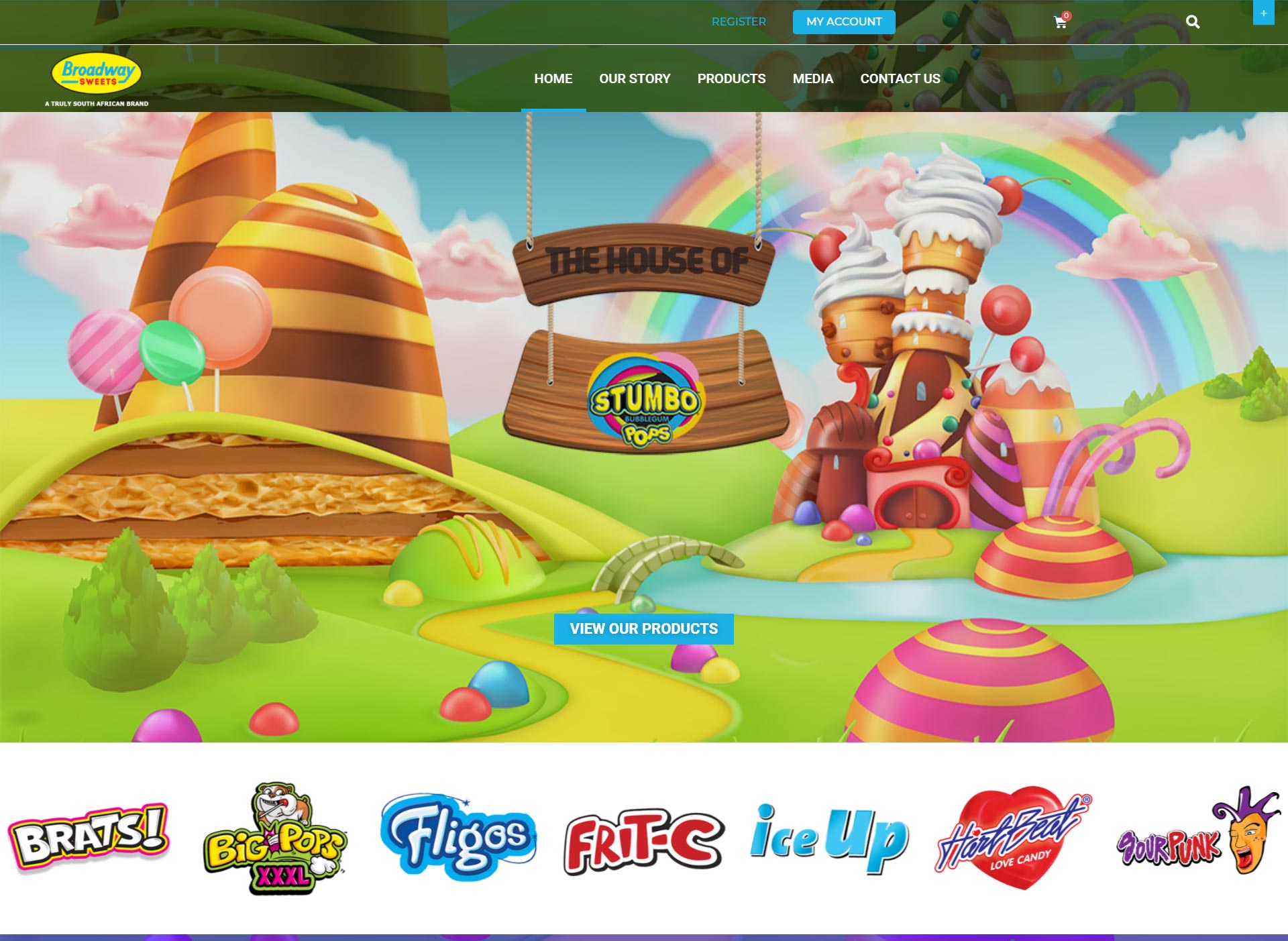 Broadway Sweets is a South African manufacturer of quality candy products which include Stumbo Bubblegum centred Pops, Fligos Chewy centred Pops, Big Pops which is the biggest lollipop in Africa boasts a hard candy shell with a bubblegum centre.