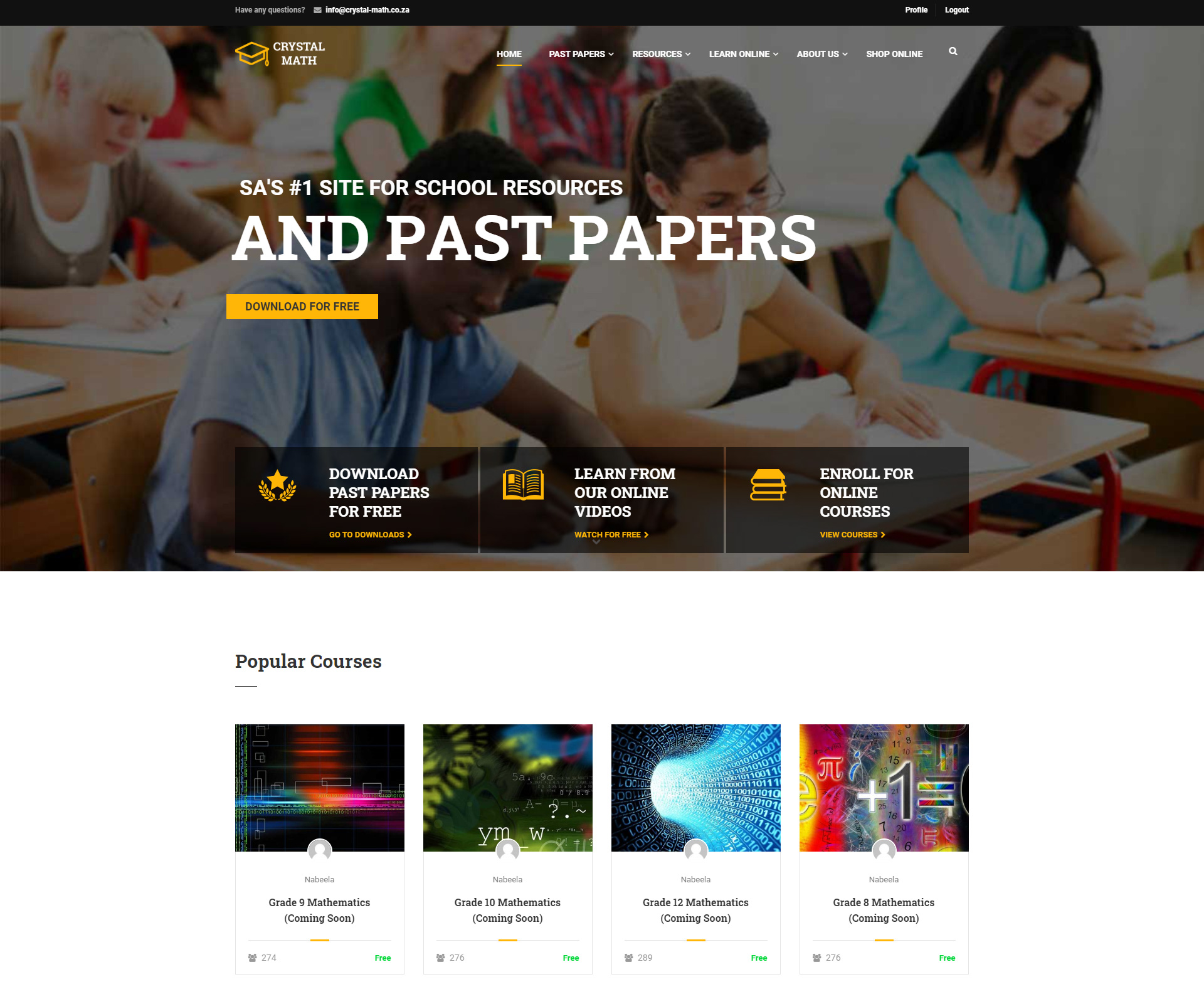 » Multi-page site (Home , Past Papers, Shop, About, Contact)