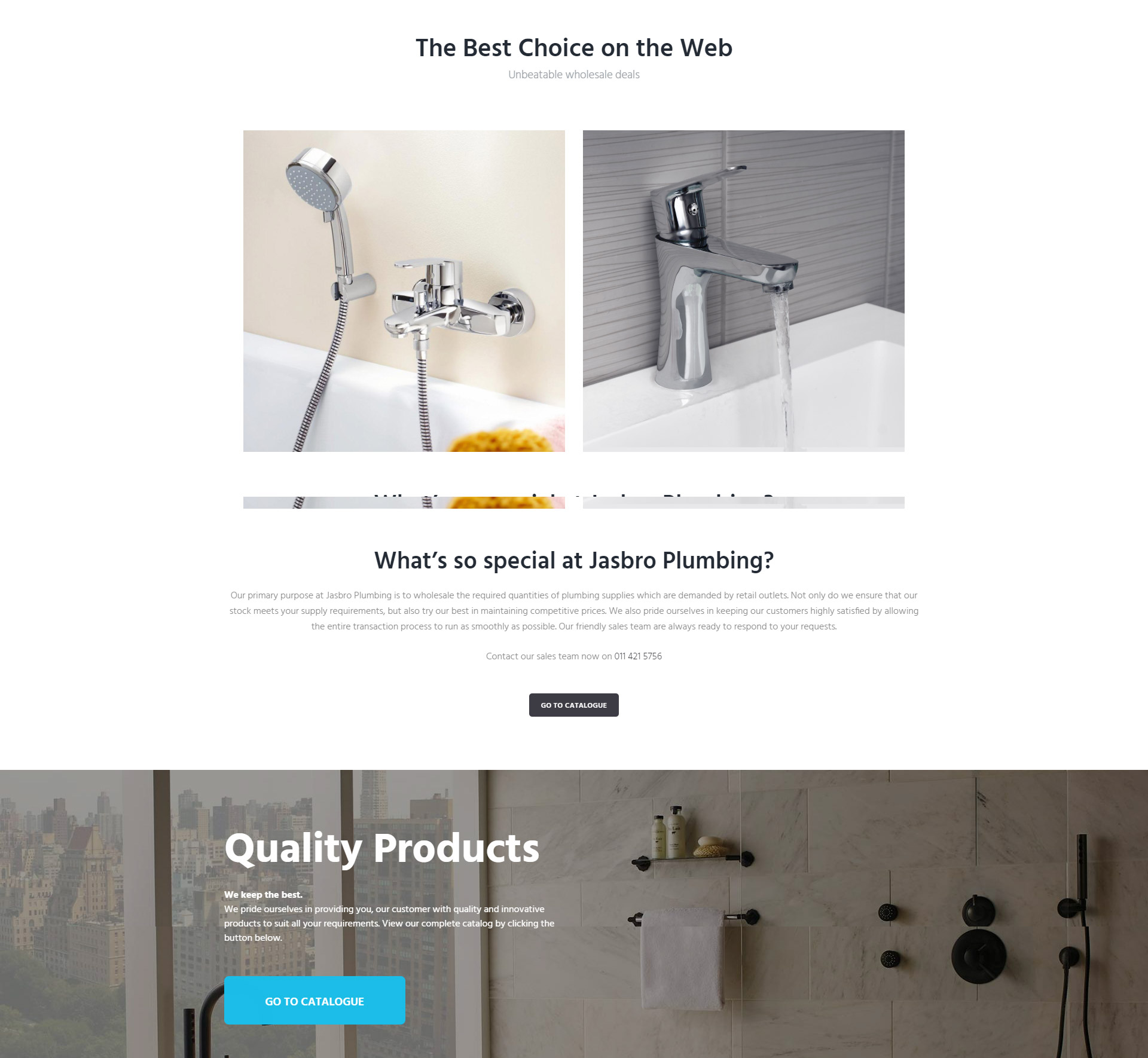 Jasbro Plumbing wholesales the required bulk quantities of plumbing supplies which are demanded by retail outlets. Some of the website features include: